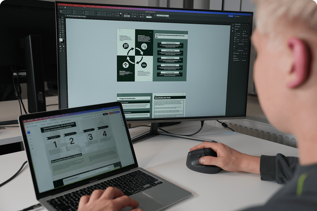 Nein, das ist nicht erforderlich, wir erstellen gerne deine erste Broschüre. Wir betreuen aber auch Kunden, bei denen wir die bereits bestehenden Prozesse optimieren können.